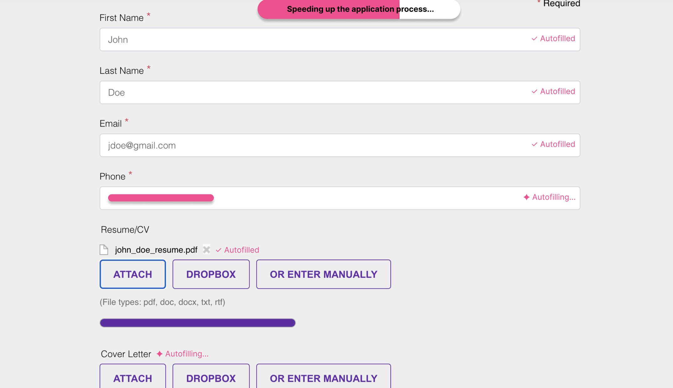 Our system learns from your resume and application history to greatly speed up the process, getting you in front of hiring managers sooner.