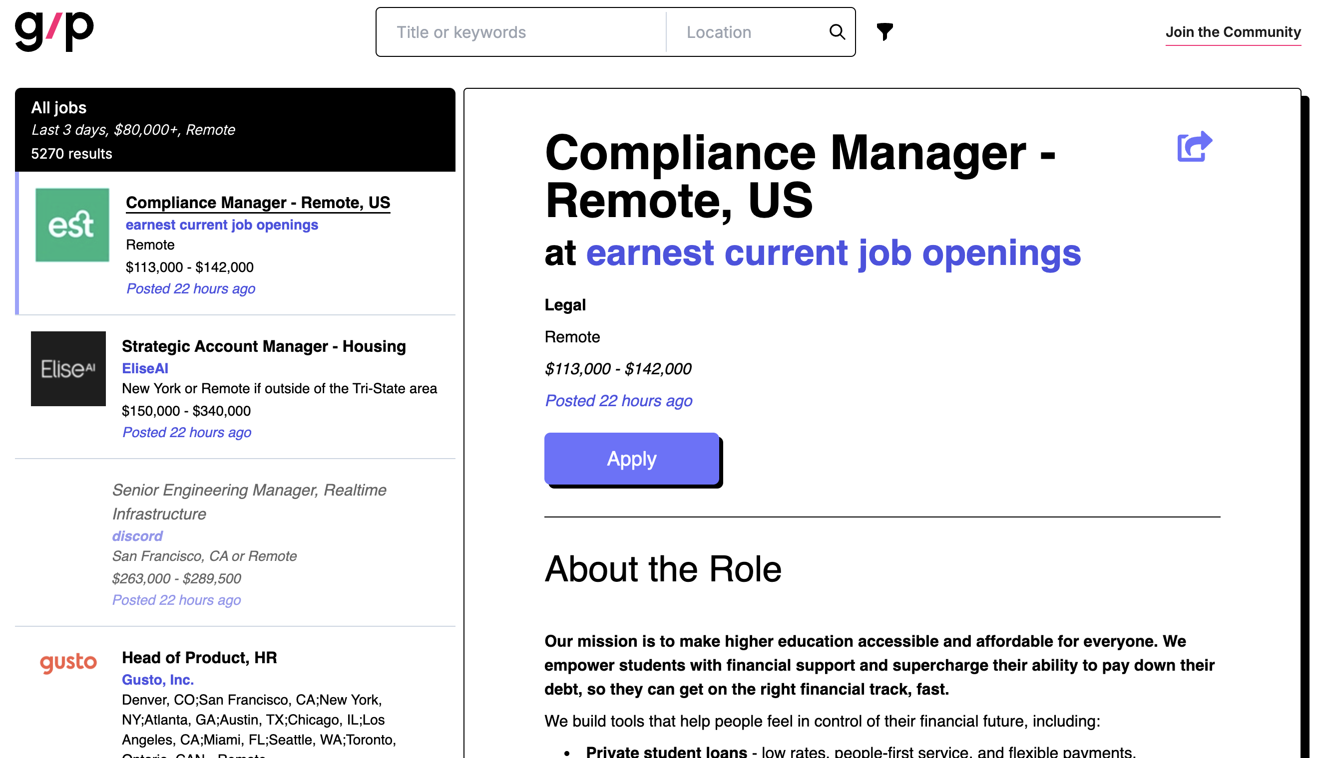 "Thank YOU for all you've done for us! The first place I direct people when I find out they're looking for a job is goodpeople. Your platform is niche and oftentimes I see jobs in here that I haven't seen in other places. I also love the community aspect and connecting with new people."